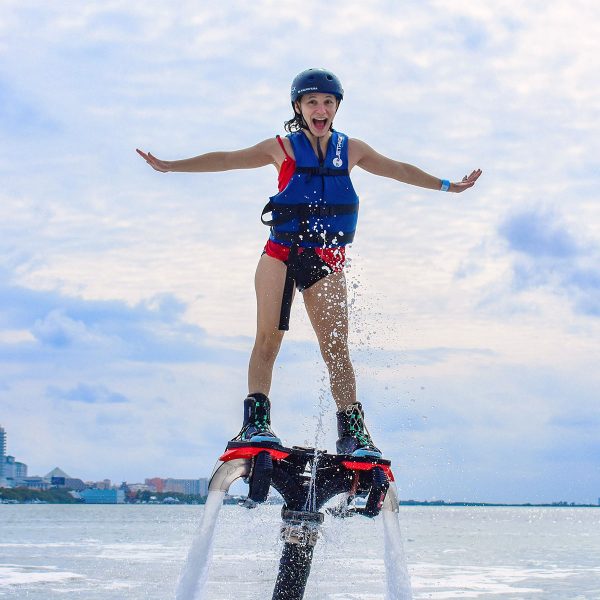 Dentro del hermoso escenario de las aguas de la Laguna Nichupté, aventureros de todo el mundo buscan experiencias que les cambien la vida, que combinen naturaleza y tecnologÃa innovadora. Para todos ellos se creó el Flyboard, un deporte acuático totalmente diferente, que te llevará a volar sobre el agua a bordo impulsado por corrientes de agua.