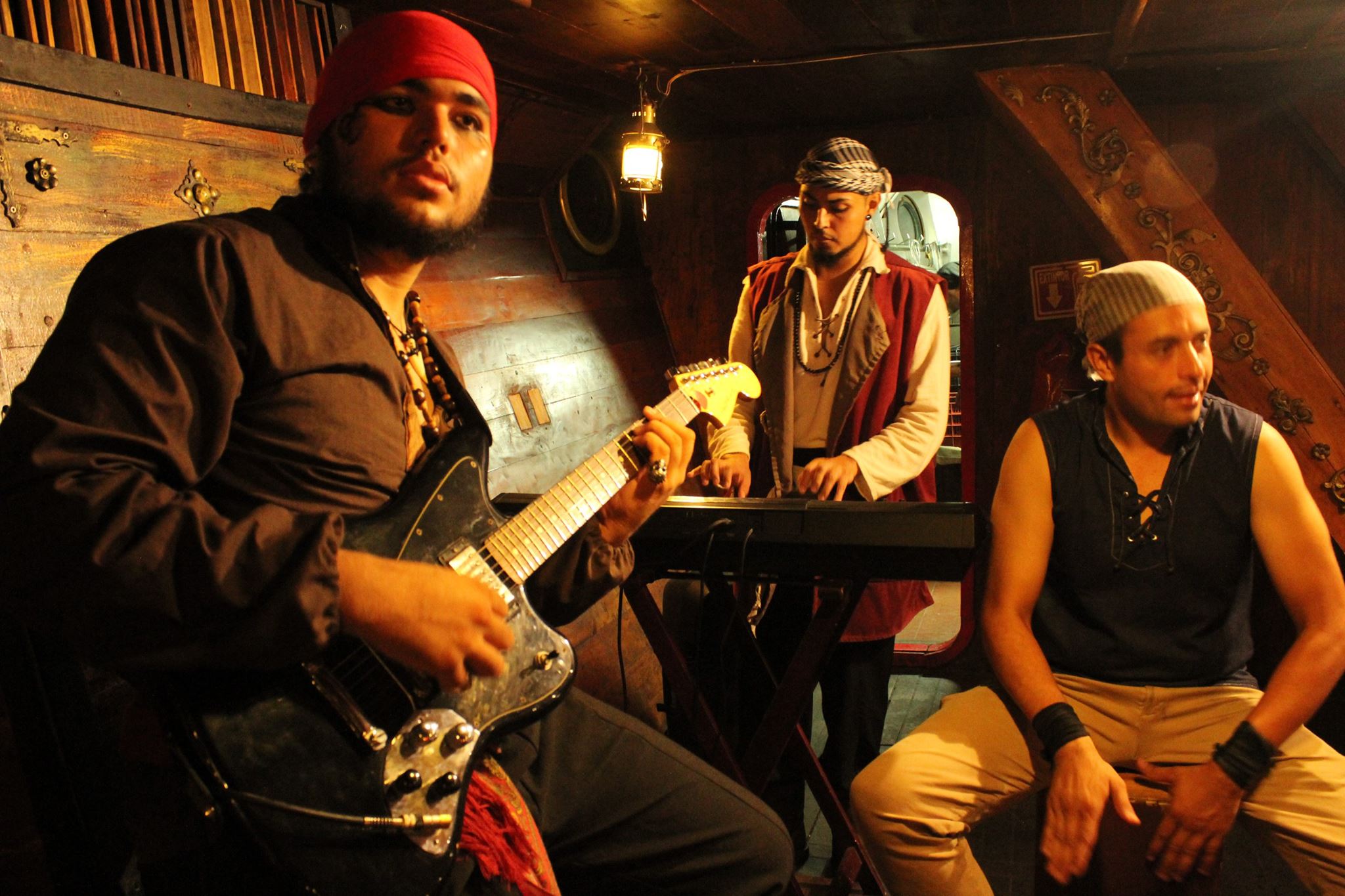 Entretenimiento de música en vivo con actuaciones especiales durante el espectáculo pirata y la cena