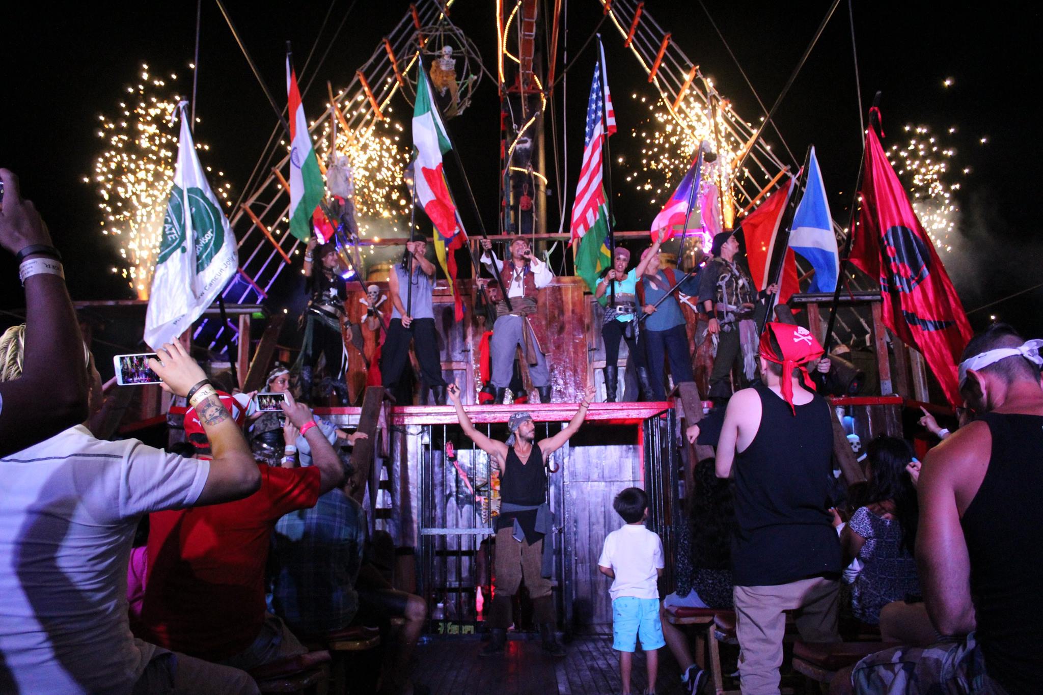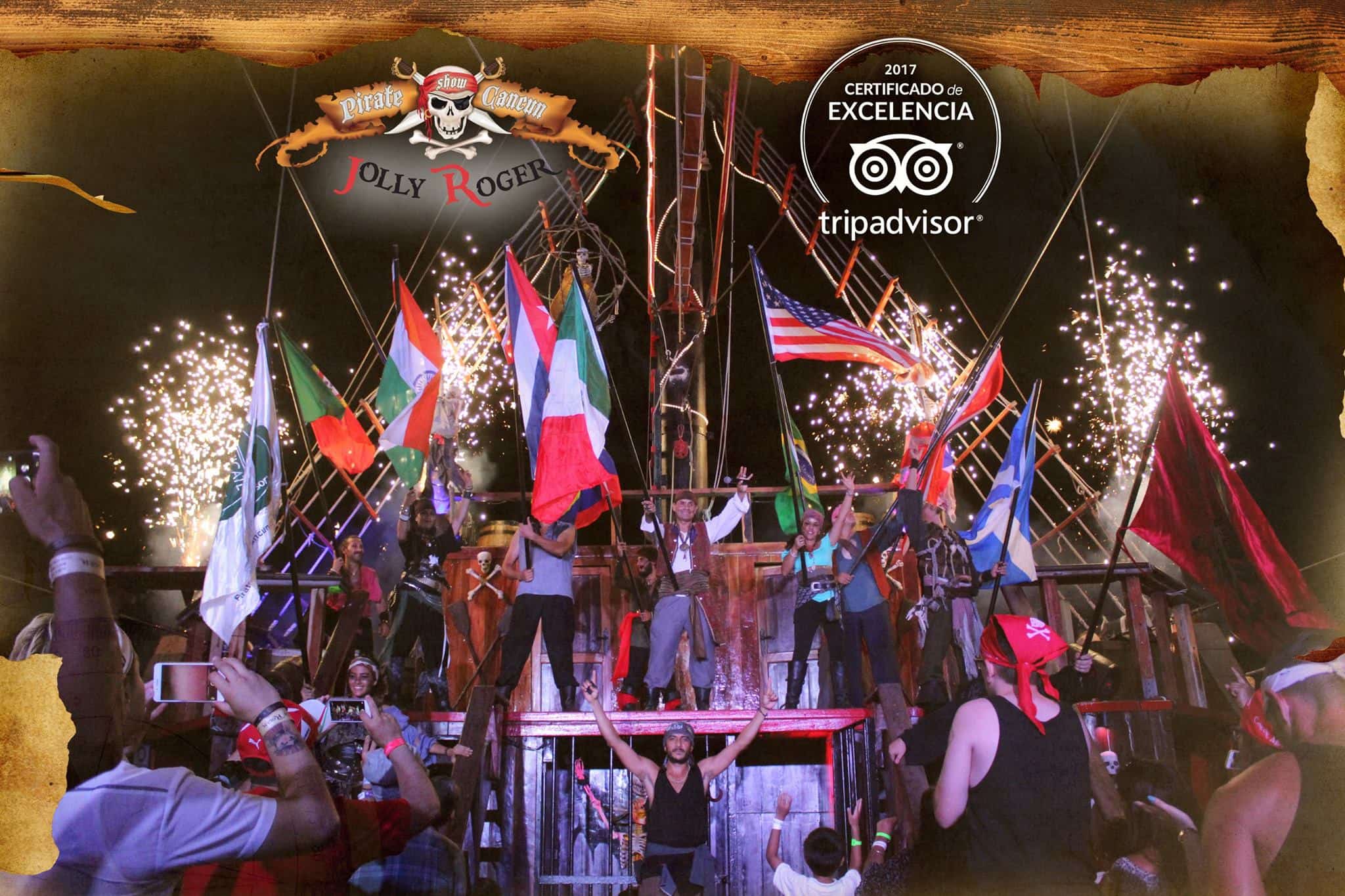 El Jolly Roger Pirate Show Cancún lo invita a bordo de un auténtico galeón pirata repleto de entretenimiento, música en vivo, diversión familiar, fuegos artificiales y una actuación teatral totalmente orquestada con deslumbrantes efectos especiales.
